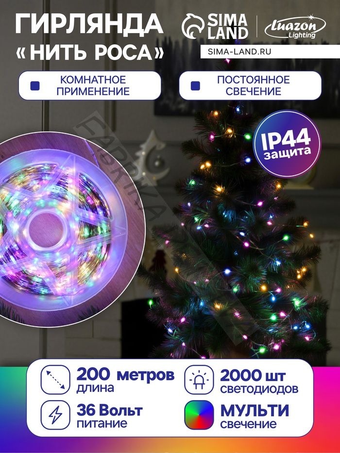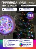 Гирлянда «Нить» 200 м роса, IP44, серебристая нить, 2000 LED, свечение мульти, 36 В