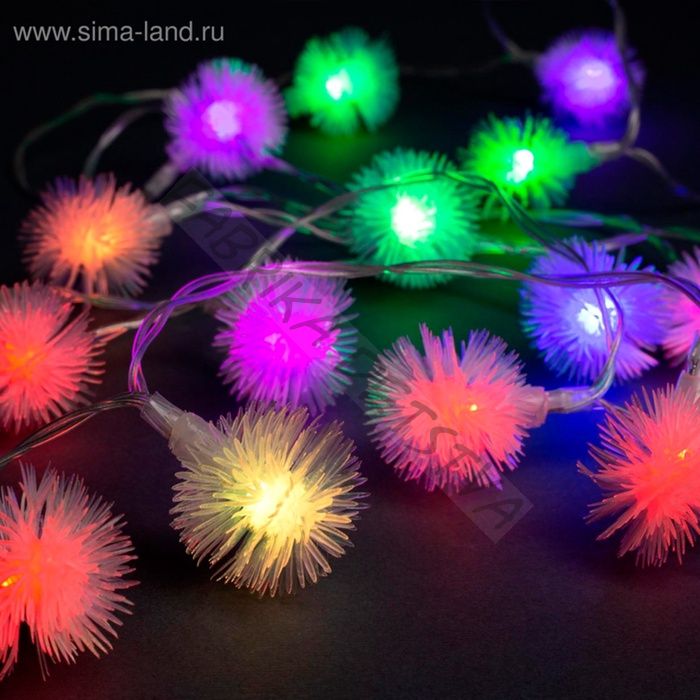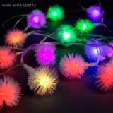 Гирлянда «Нить» 3 м с насадками «Ёжики», IP20, прозрачная нить, 20 LED, свечение мульти (RG/RB), мигание, USB