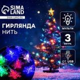 Гирлянда «Нить» 3 м с насадками «Снежинки малые», IP20, прозрачная нить, 20 LED, свечение мульти (RG/RB), мигание, USB