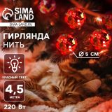Гирлянда «Нить» 4.5 м с насадками «Цветочные шары», IP20, прозрачная нить, 15 LED, свечение красное, 220 В