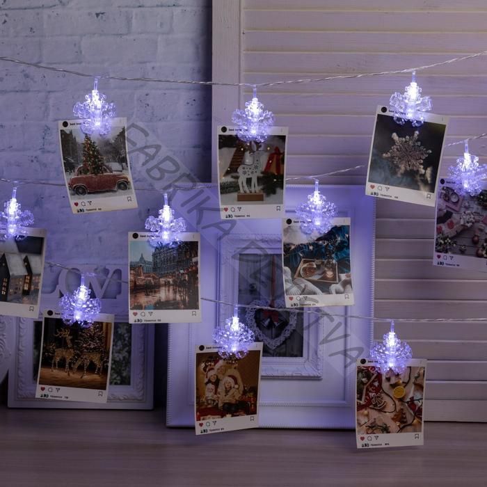 Гирлянда «Нить» 4.5 м с насадками «Прищепки-снежинки», IP20, прозрачная нить, 20 LED, свечение белое, 220 В