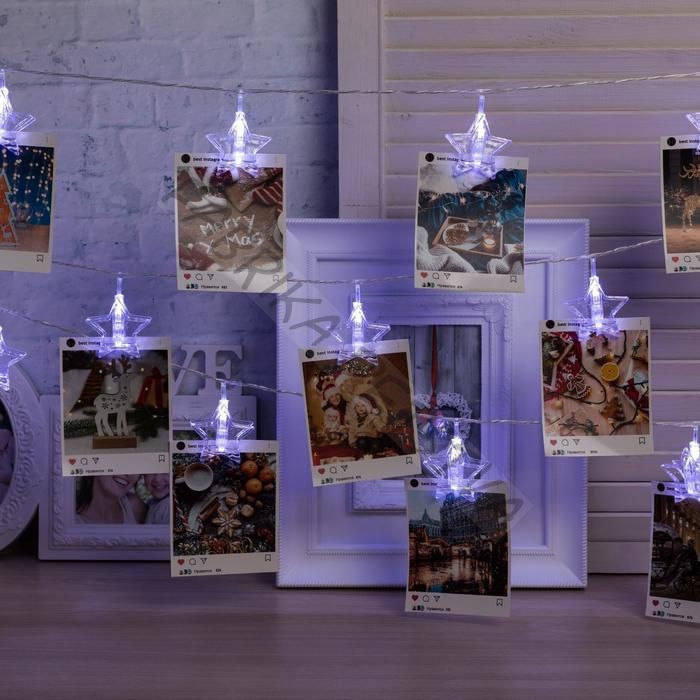 Гирлянда «Нить» 4.5 м с насадками «Прищепки-звёзды», IP20, прозрачная нить, 20 LED, свечение белое, 220 В