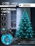 Гирлянда «Нить» 4 м, IP20, прозрачная нить, 40 LED, 2 режима, батарейки AAх3 (нет в комплекте), свечение аквамарин