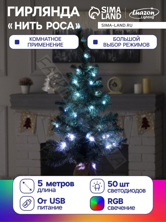 Гирлянда «Нить» 5 м роса, IP20, серебристая нить, 50 LED, пульт ДУ, свечение RGB, USB