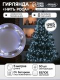 Гирлянда «Нить» 5 м роса, IP65, серебристая нить, 50 LED, 8 режимов, батарейки AAх3 (нет в комплекте), свечение белое
