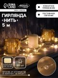 Гирлянда «Нить» 5 м роса с насадками «Перламутр», IP20, нить серебристая, 50 LED, батарейки AAx2 (не в комплекте), 2 режима, свечение тёплое белое