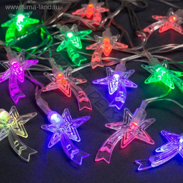 Гирлянда «Нить» 5 м с насадками «Комета», IP20, прозрачная нить, 20 LED, свечение мульти (RG/RB), мигание, 220 В