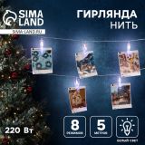 Гирлянда «Нить» 5 м с насадками «Прищепки», IP20, прозрачная нить, 30 LED, свечение белое, 8 режимов, 220 В