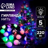 Гирлянда «Нить» 5 м с насадками «Шарики белые», IP20, тёмная нить, 20 LED, свечение мульти (RG/RB), мигание, 220 В