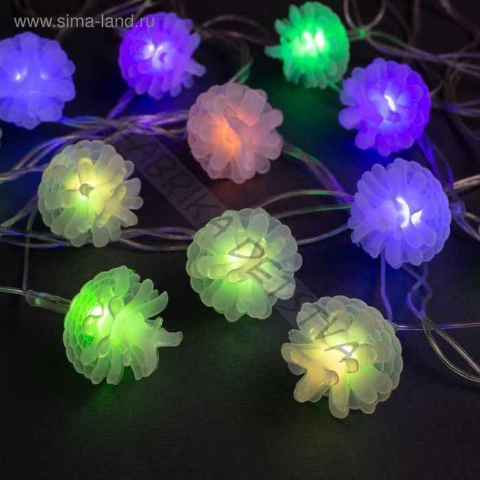 Гирлянда «Нить» 5 м с насадками «Шишки сосновые», IP20, прозрачная нить, 20 LED, свечение мульти (RG/RB), мигание, 220 В