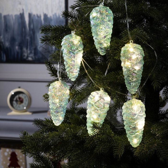Гирлянда «Нить-грозди» 230 см, нить прозрачная, «Шишки», 30 LED, 4.5 В, батарейки ААх3 (нет в комплекте), свечение тёплое белое