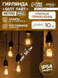 Гирлянда «Ретро белт-лайт» со свесами 10 и 20 см, 10 м, IP54, УМС, 2W, тёмная нить, шаг 50 см, Е27 (без ламп), 220 В