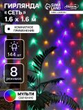 Гирлянда «Сеть» 1.6 x 1.6 м, IP20, прозрачная нить, 144 LED, 8 режимов, 220 В, свечение мульти
