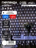 Гирлянда «Сеть» 2 x 3 м, IP44, УМС, прозрачная нить, 384 LED, свечение белое, 220 В