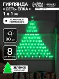 Гирлянда «Сеть-ёлка» 1 x 1 м, IP20, тёмная нить, 90 LED, свечение зелёное, 8 режимов, 220 В