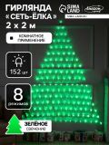 Гирлянда «Сеть-ёлка» 2 x 2 м, IP20, тёмная нить, 152 LED, свечение зелёное, 8 режимов, 220 В