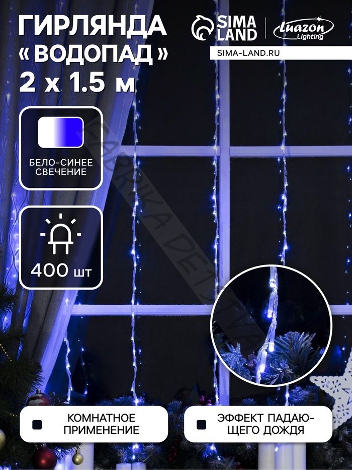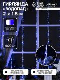 Гирлянда «Водопад» 2 x 1.5 м, IP20, прозрачная нить, 400 LED, свечение белое/синее, 8 режимов, 220 В