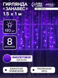 Гирлянда «Занавес» 1.5 x 1 м, IP20, прозрачная нить, 180 LED, свечение фиолетовое, 8 режимов, 220 В