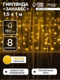 Гирлянда «Занавес» 1.5 x 1 м, IP20, прозрачная нить, 180 LED, свечение тёплое белое, 8 режимов, 220 В