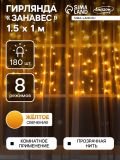 Гирлянда «Занавес» 1.5 x 1 м, IP20, прозрачная нить, 180 LED, свечение жёлтое, 8 режимов, 220 В