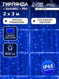 Гирлянда "Занавес" 2 х 3 м, IP65, УМС, тёмная нить каучук, 600 LED, свечение синее, 220 В