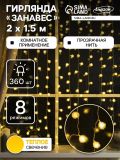 Гирлянда «Занавес» 2 x 1.5 м с насадками «Ёжики», IP20, прозрачная нить, 360 LED, свечение тёплое белое, 8 режимов, 220 В