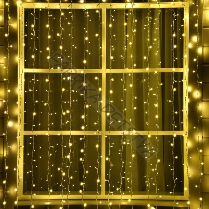 Гирлянда «Занавес» 2 x 3 м, IP44, УМС, белая нить, 760 SMD-LED, свечение тёплое белое, 220 В