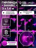 Гирлянда «Занавес» 3 x 1.4 м с насадками «Перья», IP20, прозрачная нить, 80 LED, свечение розовое, 8 режимов, 220 В