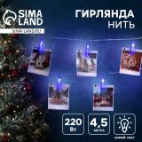 Гирлянда-нить, 4.5 м с насадками «Прищепки», IP20, прозрачная нить, 20 LED, свечение синее, 220 В