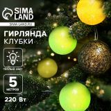 Гирлянда - нить, 5 м с насадками «Клубки бело-зелёные», IP20, прозрачная нить, 20 LED, свечение тёплое белое, 220 В
