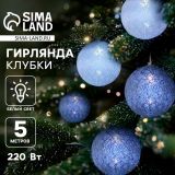 Гирлянда - нить, 5 м с насадками «Клубки снежные», IP20, прозрачная нить, 20 LED, свечение белое, 220 В