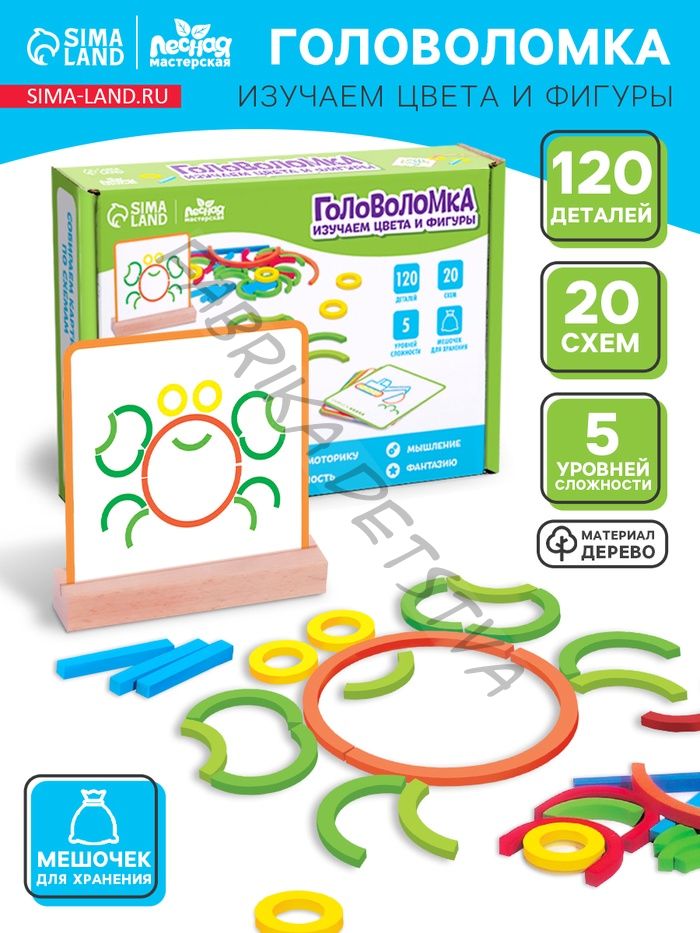 Головоломка «Изучаем цвета и фигуры», 120 деталей, 20 схем, 5 уровней