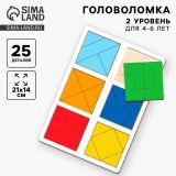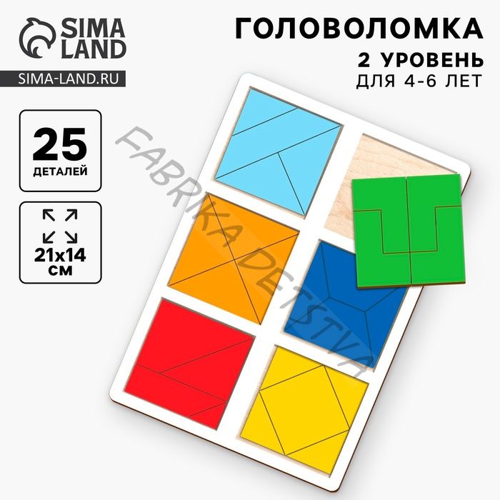 Головоломка геометрическая деревянная «Квадраты», 2 уровень, 6 квадратов
