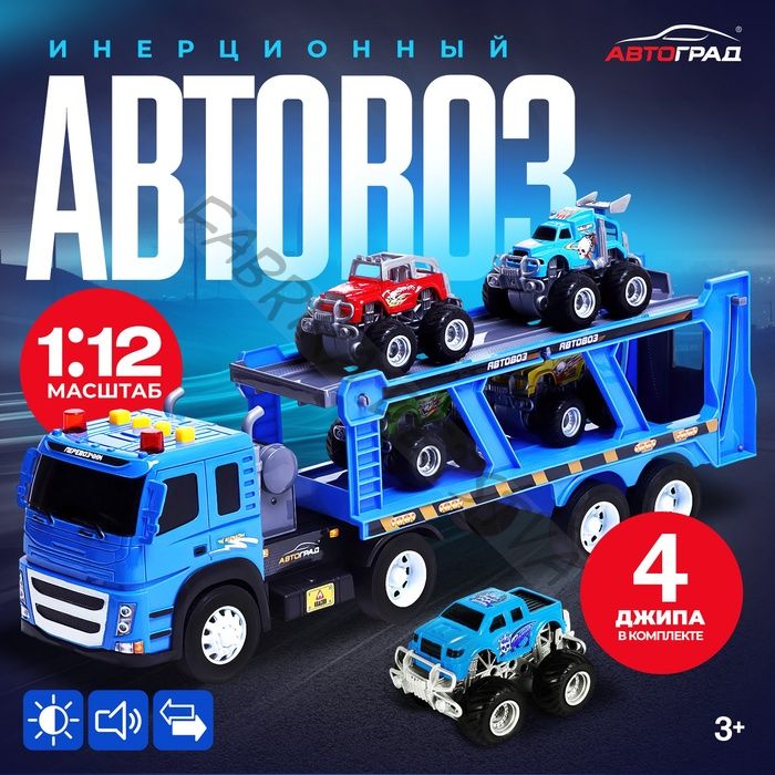 Грузовик инерционный «Автовоз», с 4 джипами, световые эффекты, масштаб 1:12