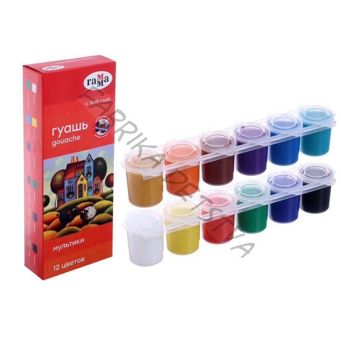 Гуашь 12 цветов x 15 мл «Гамма. Мультики», блок-тара, картонная упаковка 100222-12