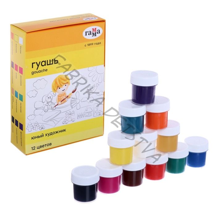 Гуашь 12 цветов x 17.5 мл «Гамма. Юный художник», картонная упаковка