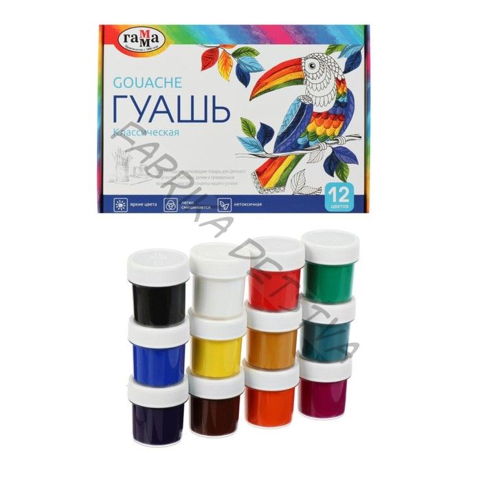 Гуашь 12 цветов x 20 мл «Гамма. Классическая»