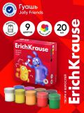 Гуашь 9 цветов x 20 мл, ErichKrause «Jolly Friends», в картонной упаковке