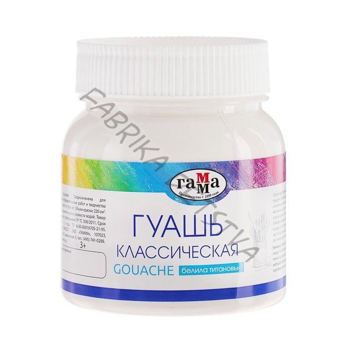 Гуашь «Гамма. Классическая», 220 мл, белила титановые