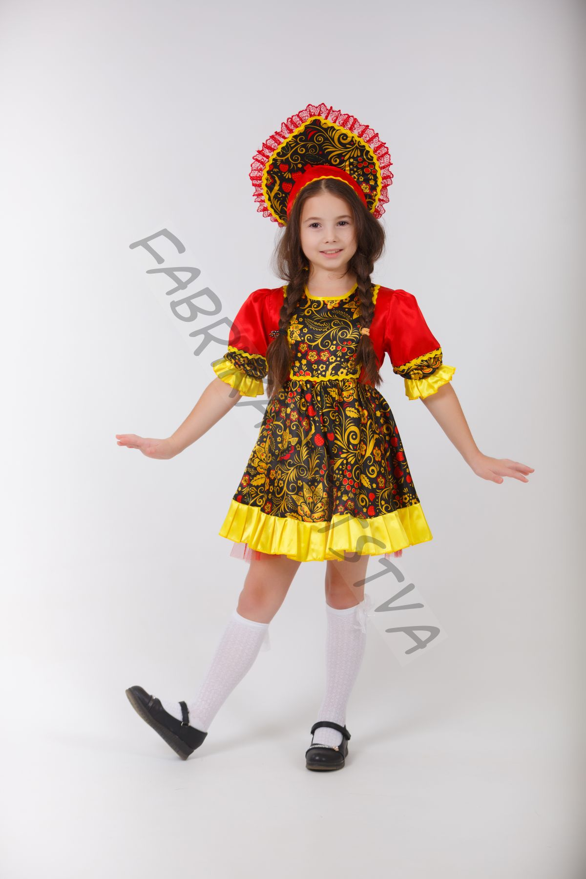 Костюм в русско-народном стиле "Хохлома" состоит из изысканного платья и богатого кокошника. Прекрасно подойдёт для масленичных гуляний, сценических и театральных постановок, Новогодних и детских тематических утренников, карнавальных вечеров .