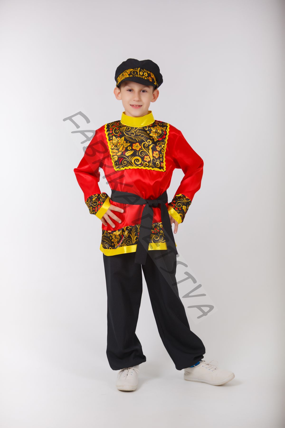 Костюм в русско-народном стиле "Хохлома" состоит из изысканной рубахи и кепки . Прекрасно подойдёт для масленичных гуляний, сценических и театральных постановок, Новогодних и детских тематических утренников, карнавальных вечеров .