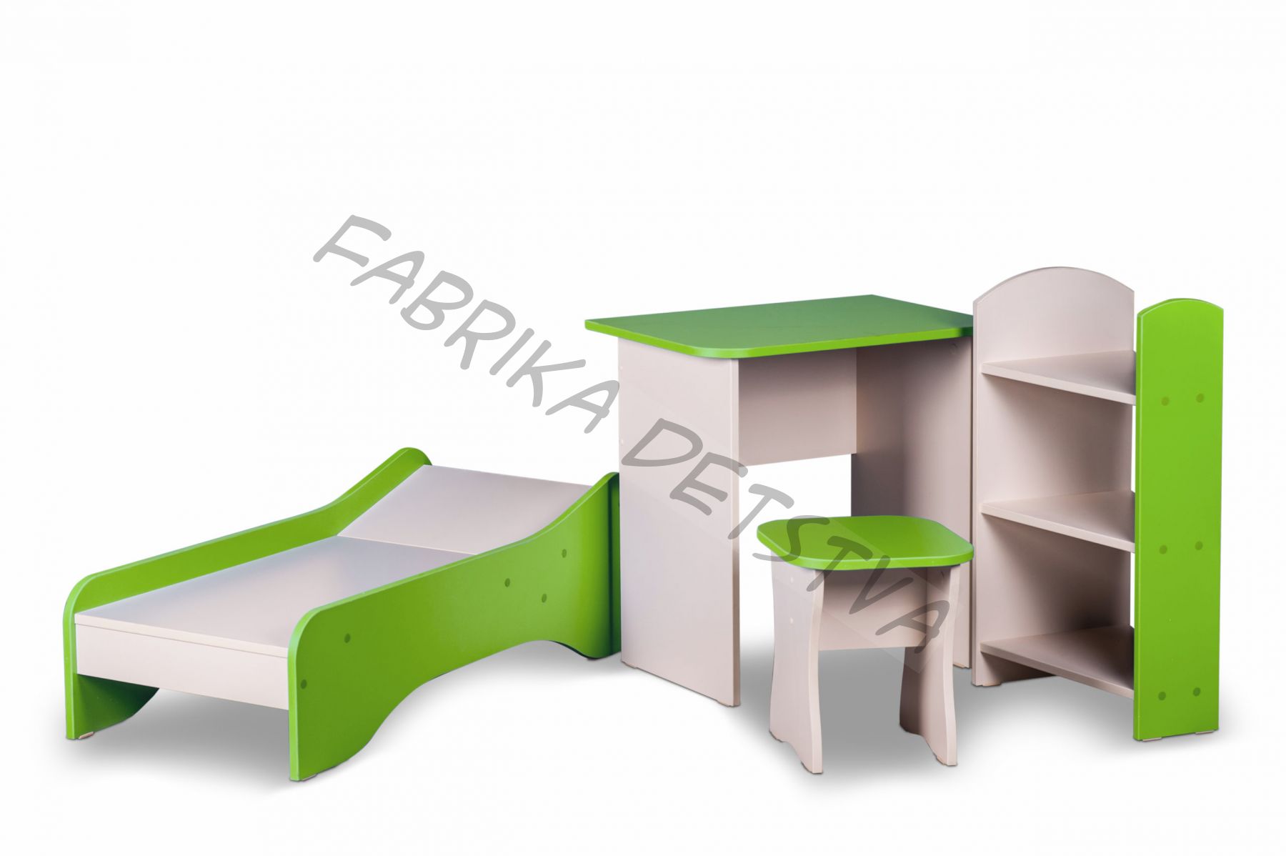 кушетка 1000*450*320, стол 600*400*600, табуретка 300*300*340, стеллаж 300*400*700 Цвет элементов(на выбор)Ирис, солнечный, манго, лайм, серенити, красный, гринери.