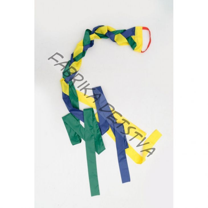 Игра представляет собой три текстильные ленты (шнуры) длиной 3 метра соединенные с одной стороны, в месте крепления имеется текстильная ручка. Пособие предназначено для подвижных игр, соревнований и эстафет. Для детей старше 3-х лет.