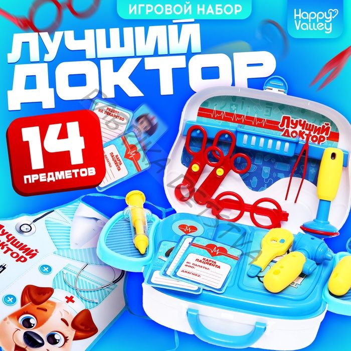С набором доктора у ребёнка будет всё нужное, чтобы лечить кукол и плюшевых зверей. Разнообразные предметы сделают знакомство с профессией врача увлекательным. Особенности набора Раскладной ящик помогает хранить все нужные инструменты в одном месте. На игровых карточках удобно вести базу пациентов и записывать истории болезни. Фартук подходит для лечения пациентов, занятий творчеством с использованием сухих материалов: пластилина, цветных мелков, кинетического песка и др. Развиваемся играя Представив себя доктором, ребёнок освоит социальные роли, получит новые знания о важных профессиях, станет внимательнее и заботливее. Такая игра не только пробудит фантазию юного специалиста, но и поспособствуют развитию эмоционального восприятия.