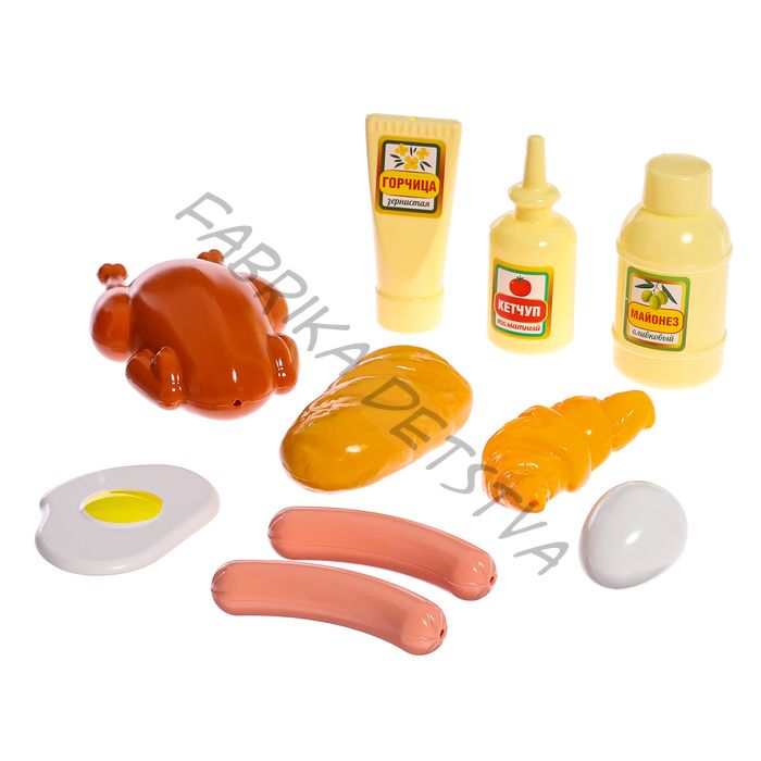Игровой набор «Продукты» № 2 — это набор игрушек, сделанных из качественной пластмассы, предназначен для сюжетно-ролевых игр. Комплектация включает в себя батон, круассан, яичницу, курицу, сосиски (2 шт.), яйцо, кетчуп, горчицу и майонез. Эта игрушка развивает воображение и помогает детям освоить базовые социальные и бытовые навыки. Игровой набор «Продукты» № 2 способствует развитию моторики рук и координации движений. Ребёнок не только улучшает свои моторные навыки, но также развивает фантазию и творческое мышление. Эта игрушка изготовлена из высококачественных материалов и прошла проверку на соответствие требованиям технических регламентов Таможенного союза. Она также имеет сертификацию ЕАС, что гарантирует её безопасность и качество.