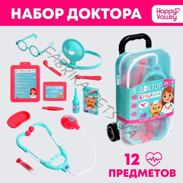 Ваш малыш любит играть и интересуется разными профессиями? Тогда набор «Доктор Крошкина» станет эффектным подарком для него! С этим набором ребёнок сможет придумать сюжетно-ролевые игры в новой для себя профессии! Что в наборе: медицинские инструменты; чемоданчик, в котором набор удобно брать с собой в гости, на прогулку или в путешествие. Польза игр с набором Игры с набором способствуют развитию воображения, мышления, цветового и эмоционального восприятия малыша. Ребёнок осваивает социальные роли, проецирует модели поведения взрослых на игровые сюжеты, учится самостоятельности и ответственности.