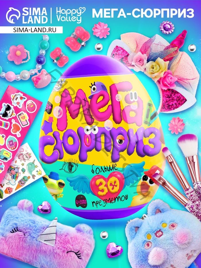 Игрушка - сюрприз в яйце «Мега-сюрприз», больше 30 предметов, фиолетовый