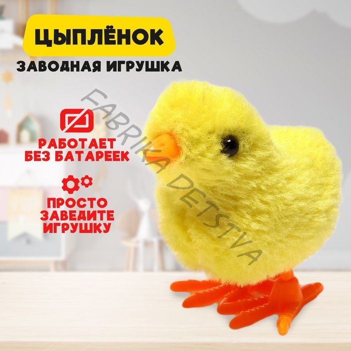 Заводная игрушка «Цыплёнок» — маленькое чудо, которое движется после того, как его завели. Для работы даже не нужны батарейки — просто поверните ключик, и игрушка начнёт идти вперёд. Особенности заводной игрушки Выполнена из качественного пластика и текстиля. Краска не содержит вредных веществ. В конструкции нет острых углов. Подходит для детей старше 3 лет. Качество товара подтверждено сертификатами Строгий контроль на всех этапах, начиная от производства, заканчивая упаковкой товара, исключает брак и делает игрушку действительно качественной. Имеет сертификат соответствия ЕАС. Увлекательно и полезно! Игра с заводным «Цыплёнком» — способ провести время с пользой и потренировать творческие навыки и моторику. Пометка «МИКС» означает, что у вас в заказе окажется цыплёнок любого цвета и вида. А если покупаете несколько штук, то в заказе может быть несколько игрушек как разных цветов и видов, так и все одинаковые.