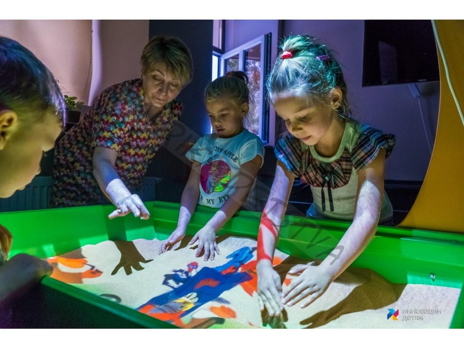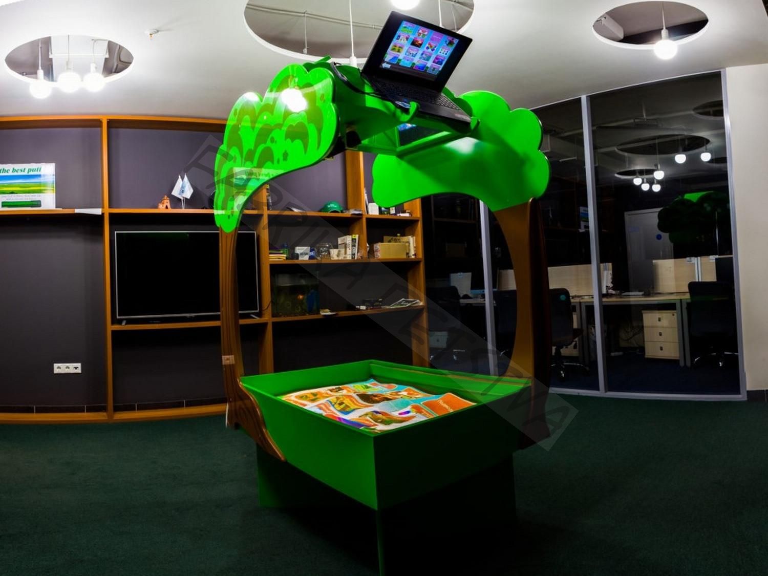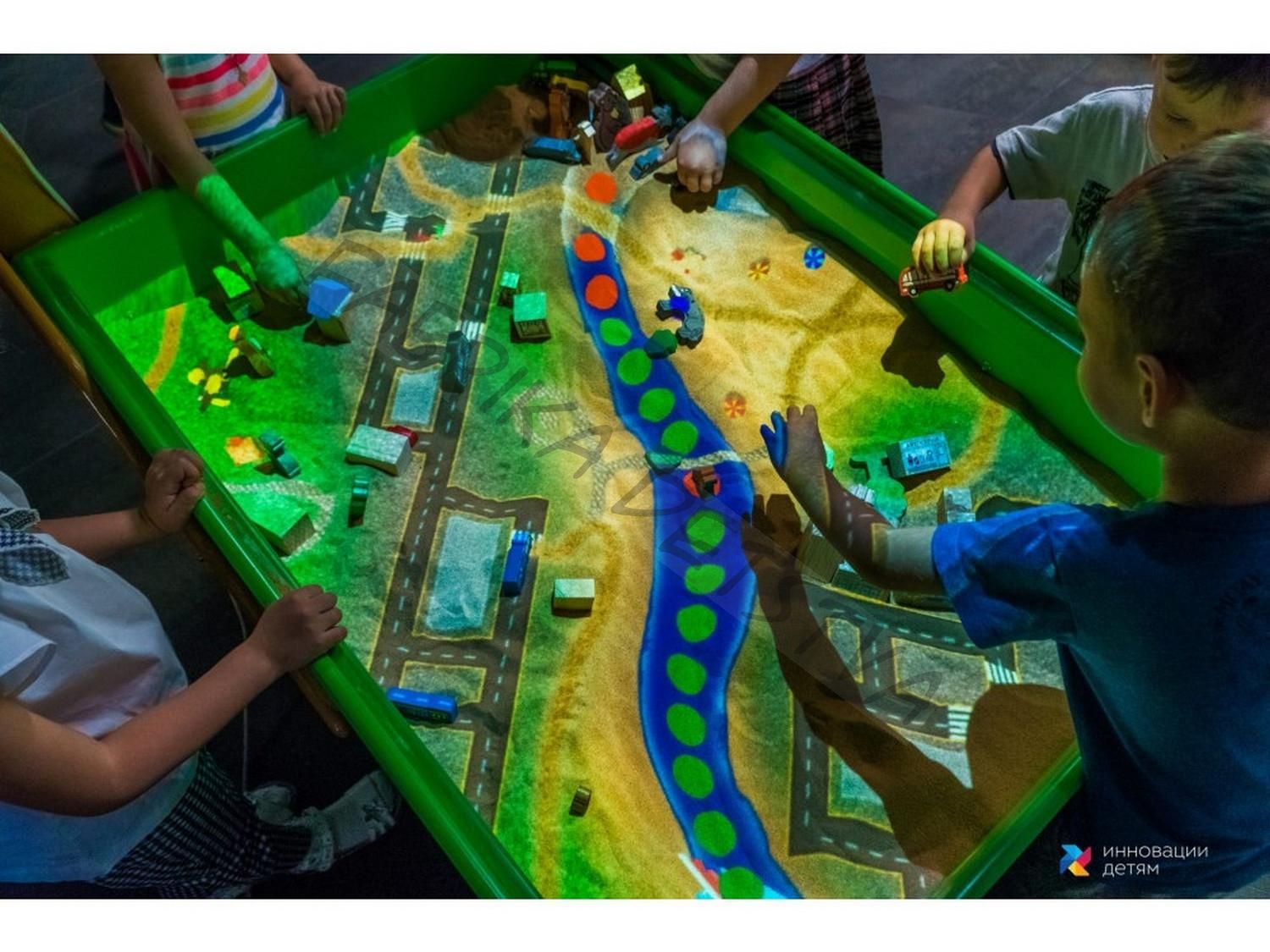 Интерактивная песочница-стол «Полянка» — это игровой развивающий комплекс для детских учреждений, который сочетает в себе чудеса дополненной реальности и преимущества сенсорного стола. Благодаря современной технологии, обыкновенный песок превращается в удивительный мир с морями, долинами, лесными цветами и марсианскими вулканами.