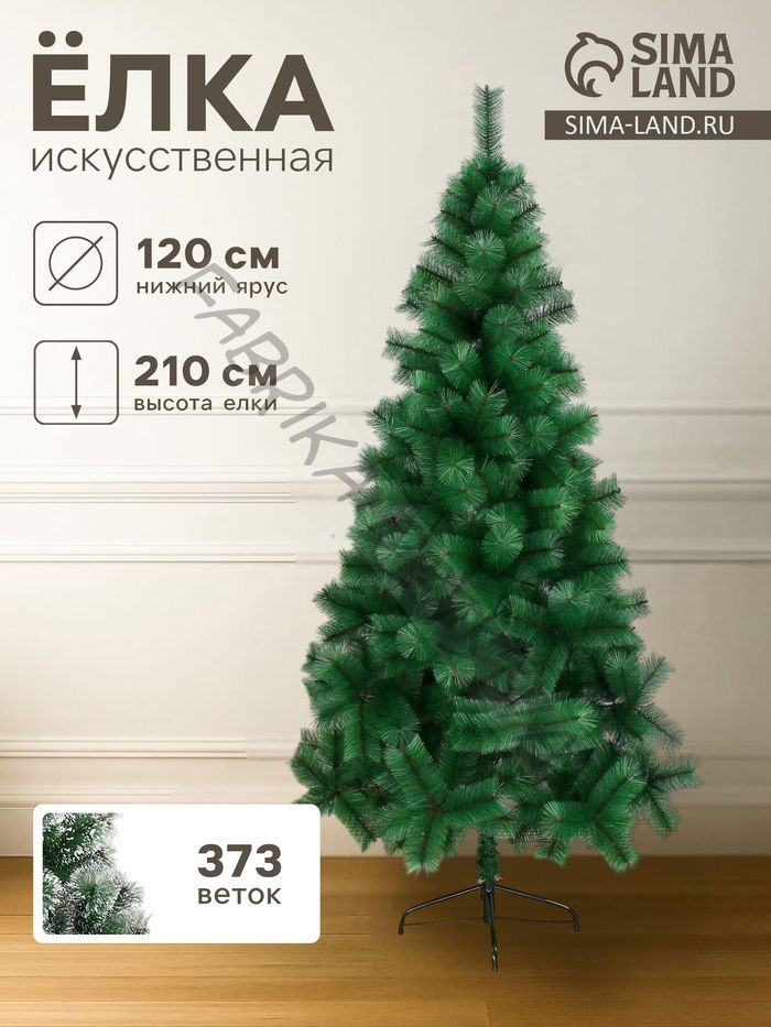 Искусственная ёлка «Зимнее волшебство. Кедр зелёный», 210 см, d нижнего яруса 120 см, d иголок 10 см, 373 ветки отгибаются